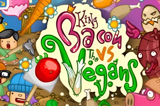 In King Bacon vs Vegans, your mission is to drop bullets on attacking enemies to eliminate them in this action-packed and humorous game.