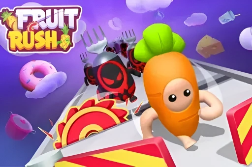Fruit Rush is a 3D parkour arcade game with a fruit theme. Players must start the game to avoid having their fruit cut off and successfully reach the end to claim victory.